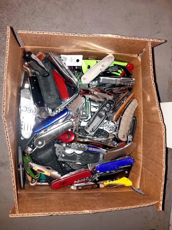 Description: 1 each 37lb box consisting of miscellaneous pocket knives.
