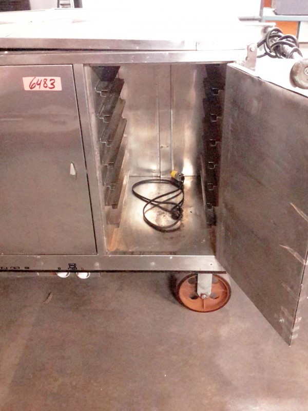 Description: 1 each 3 bay stainless steel hot food transport cart.