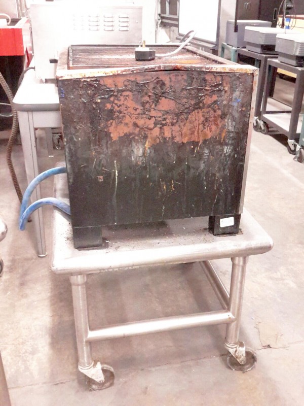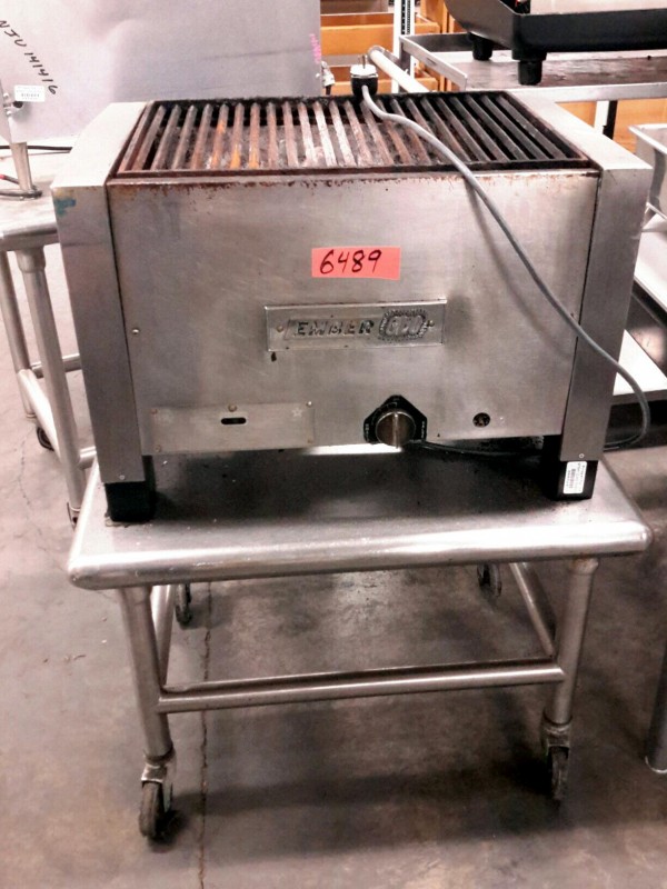 Description: 1 each Ember Glo gas char broiler with stainless steel table on wheels.