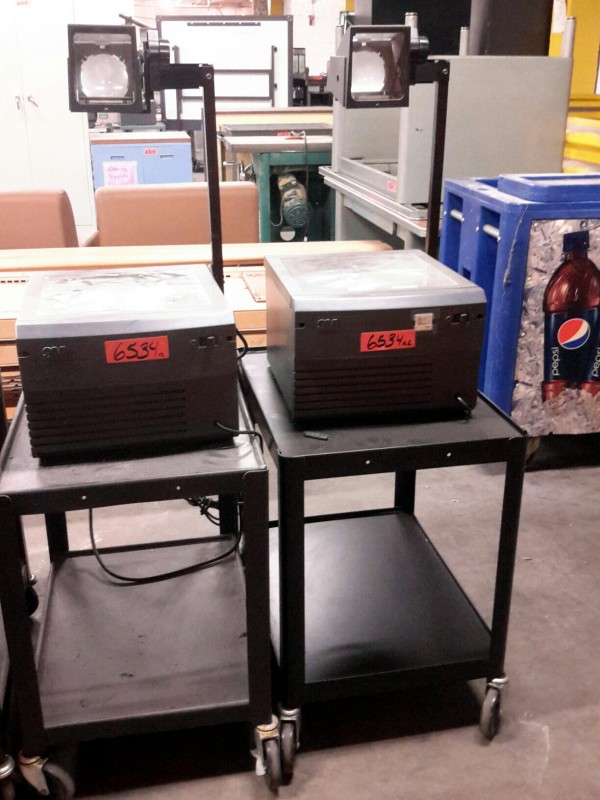 Description: Lot consisting of 2 each 3M projectors and 2 each a/v carts. One of the projectors has cracked glass.