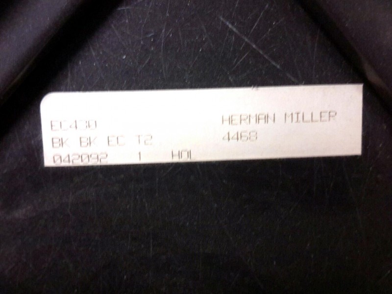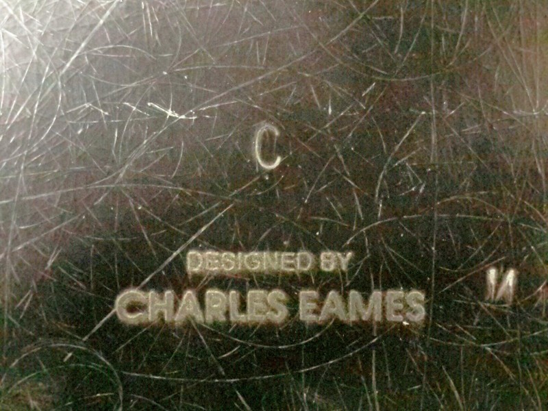 Description: 1 each Herman Miller chair designed by Charles Eames. This chair has a Herman Miller sticker on it and is branded into the plastic as being designed by Charles Eames.