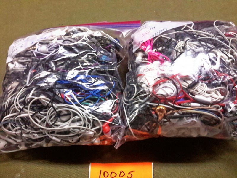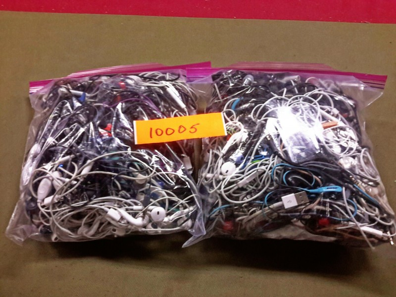 Description: Bags of ear buds - 2 each. The gallon sized bags are full of ear buds. The bags contain many different brand names within them.