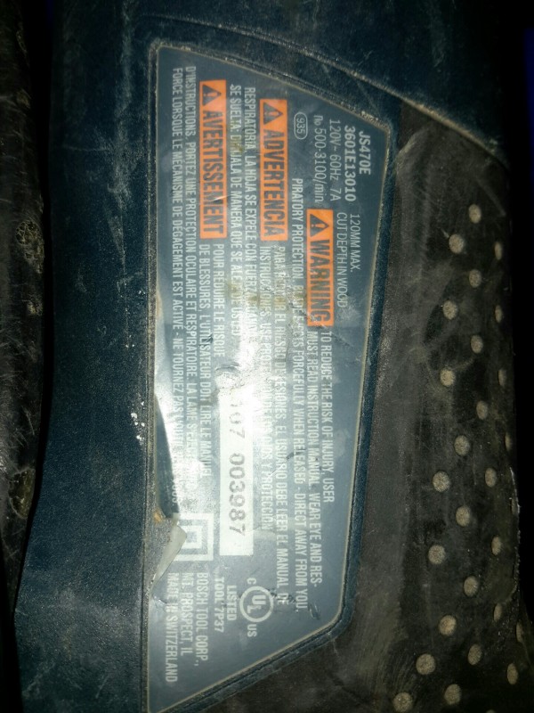 Description: 1 each Bosch model JS470E electric jig saw.