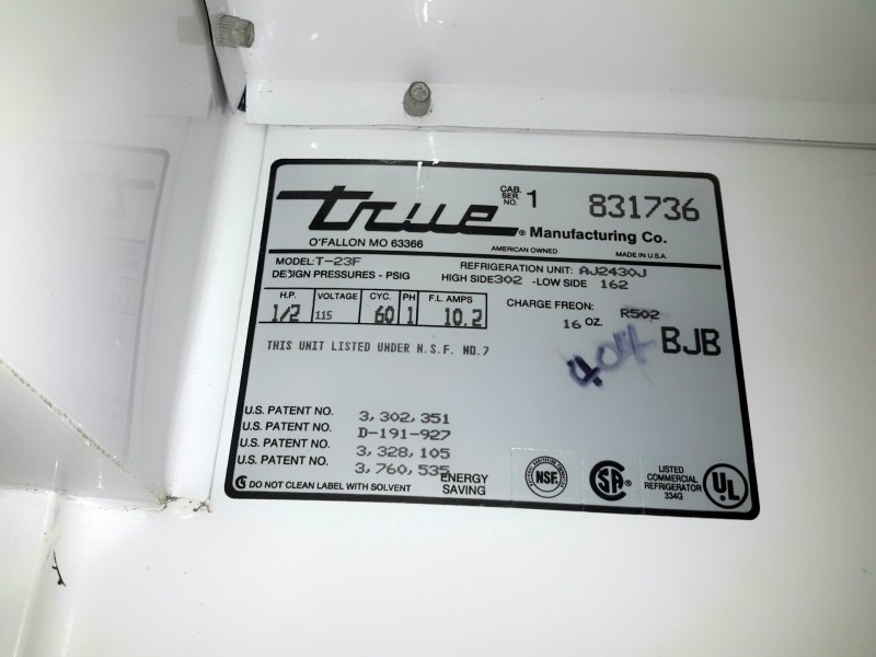 Description: 1 each True stainless steel commercial freezer model T-23F.