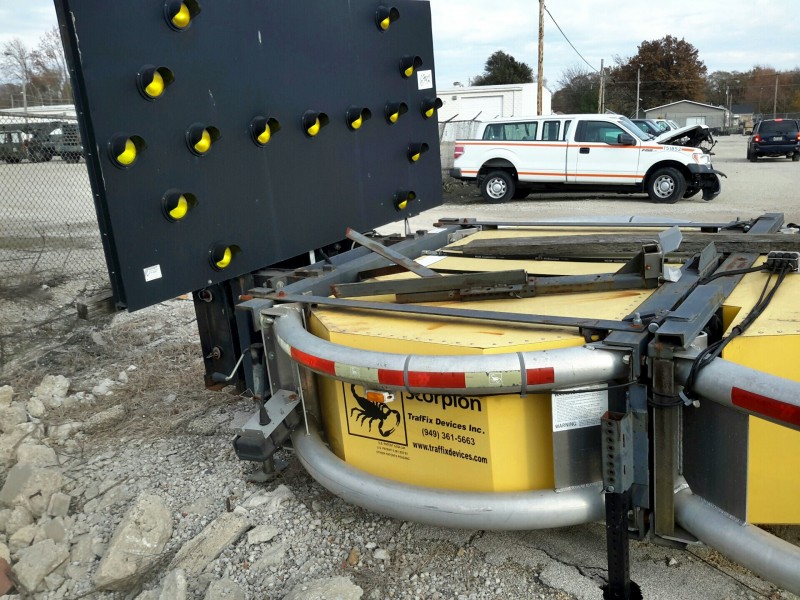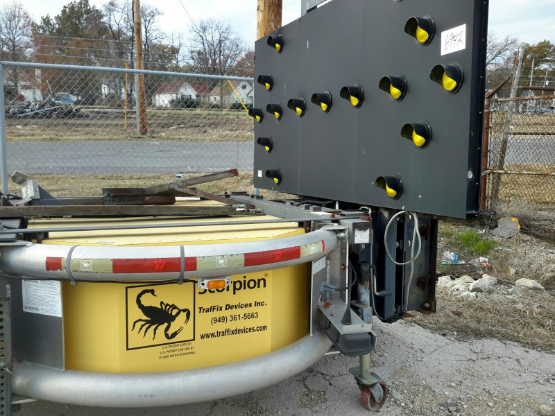 Description: 1 each Scorpion truck mounted attenuator TrafFix device with Vermac arrow board sign.