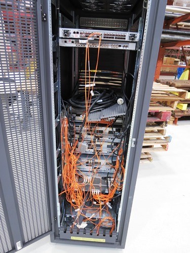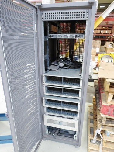 SUN/STORAGE TEK 3960/st6540 SAN STORAGE RACK, MODEL st6540, 2 CONTROLLERS WITH 4 DISK ARRAYS, NO DRIVES, BROCADE 32 PORT (ACTIVE 24 PORT) FIBER SWITCH 5000 CONNECTED TO st6540 SAN, BROCADE 16 PORT FIBER SWITCH 7500 CONNECTED TO st6540 SAN