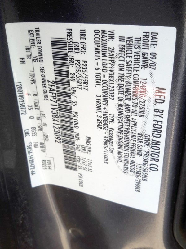 2008 FORD CROWN VICTORIA SEDAN -