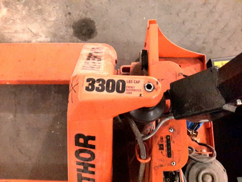 Description: 1 each Interthor 3300 battery powered pallet jack.