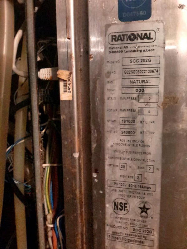 Description: 1 each Rational natural gas combi oven. Unit is labelled as non working, will need repair.