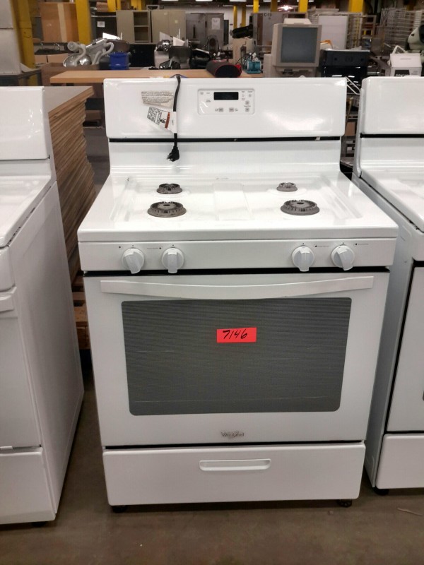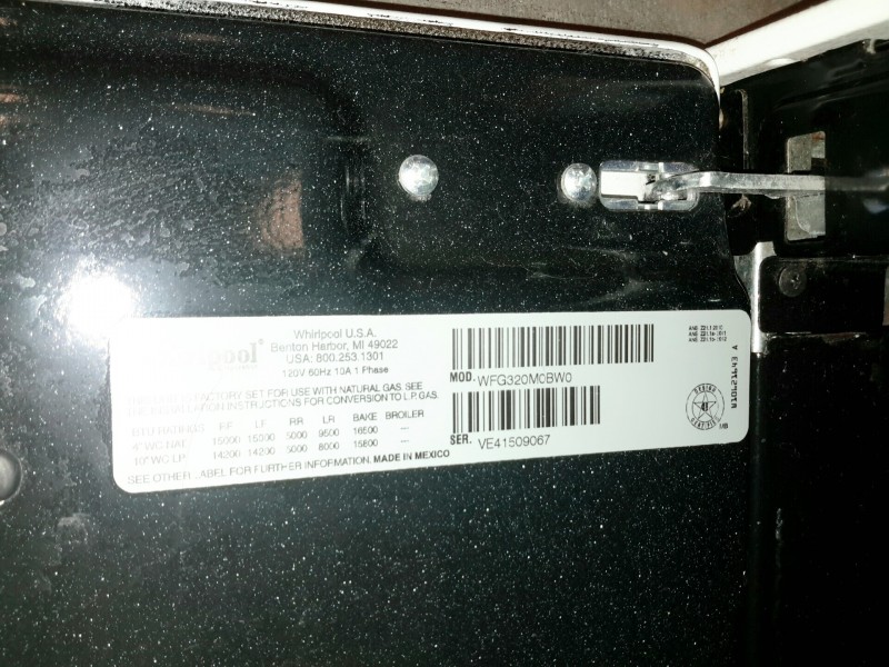 Description: 1 each Whirlpool gas range. All hardware is in the bottom warming drawer for this unit. Range was replaced due to an upgrade. To see the model number look in the picture gallery.