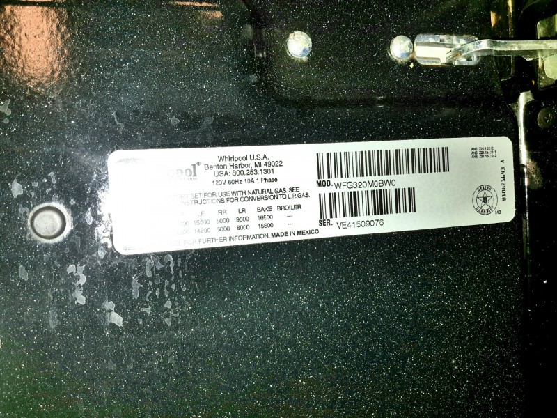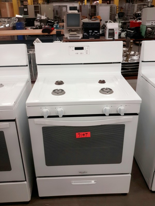 Description: 1 each Whirlpool gas range. All hardware is in the bottom warming drawer for this unit. Range was replaced due to an upgrade. To see the model number look in the picture gallery.