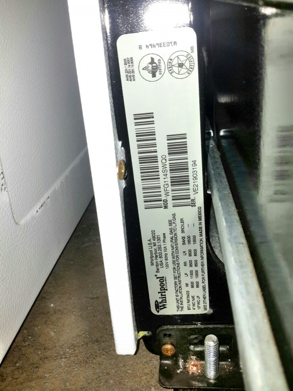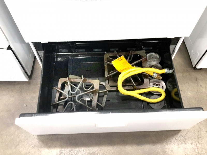 Description: 1 each Whirlpool gas range. All hardware is in the bottom warming drawer for this unit. Range was replaced due to an upgrade. To see the model number look in the picture gallery.
