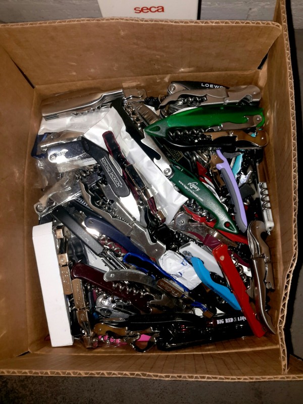 Description: 1 each 30lb box of corkscrew/bottle openers.