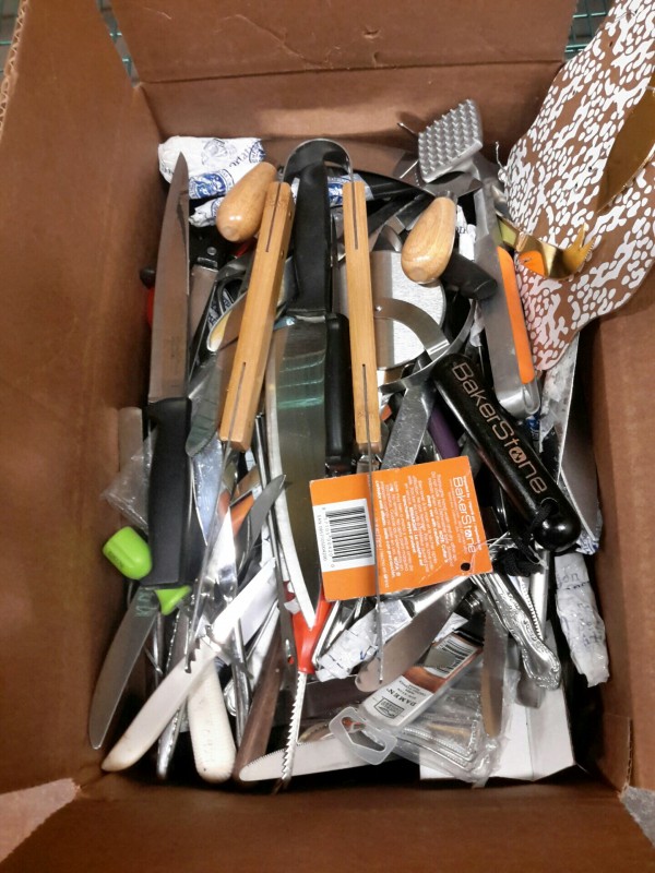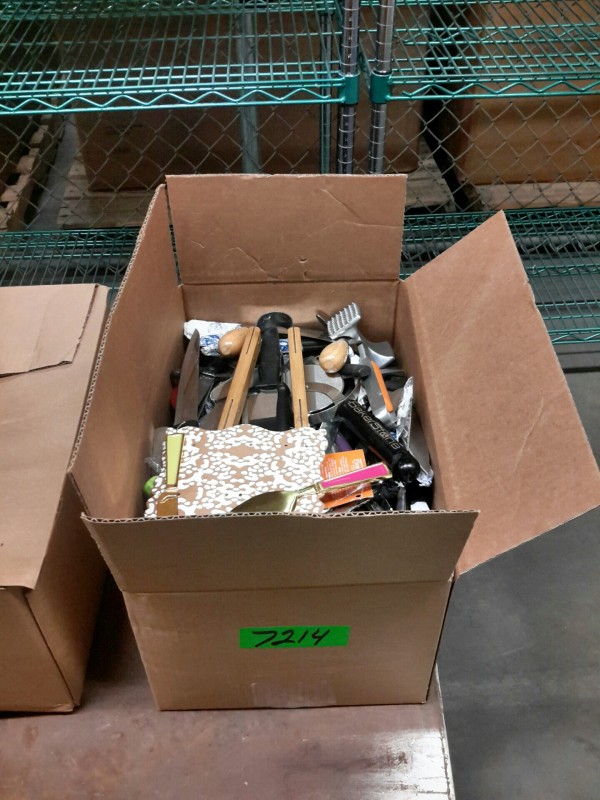 Description: 1 each box consisting of miscellaneous kitchen utensils. Box dimensions = 17 1/4"x11 1/4' x 9 1/2'