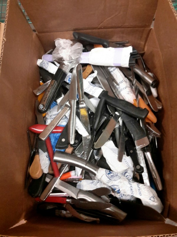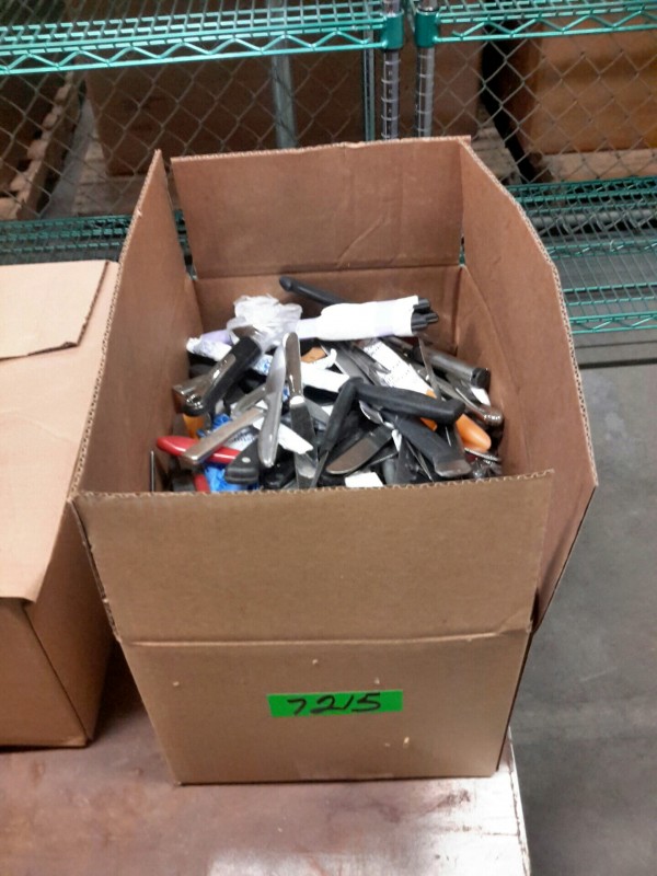 Description: 1 each box consisting of miscellaneous kitchen utensils. Box dimensions = 17 1/4"x11 1/4' x 9 1/2'