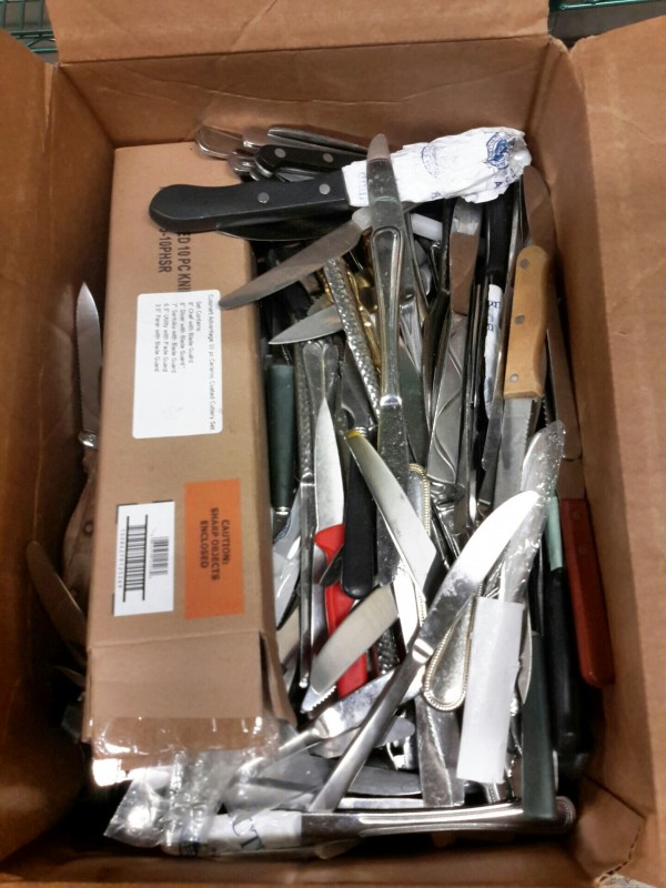 Description: 1 each box consisting of miscellaneous kitchen utensils. Box dimensions = 17 1/4"x11 1/4' x 9 1/2'