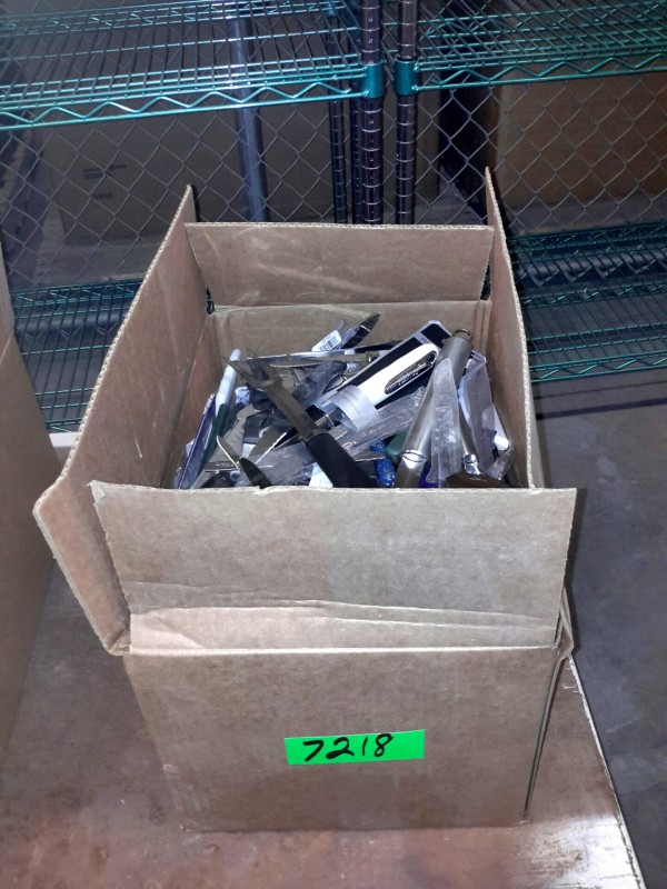 Description: 1 each box consisting of miscellaneous kitchen utensils. Box dimensions = 17 1/4"x11 1/4' x 9 1/2'