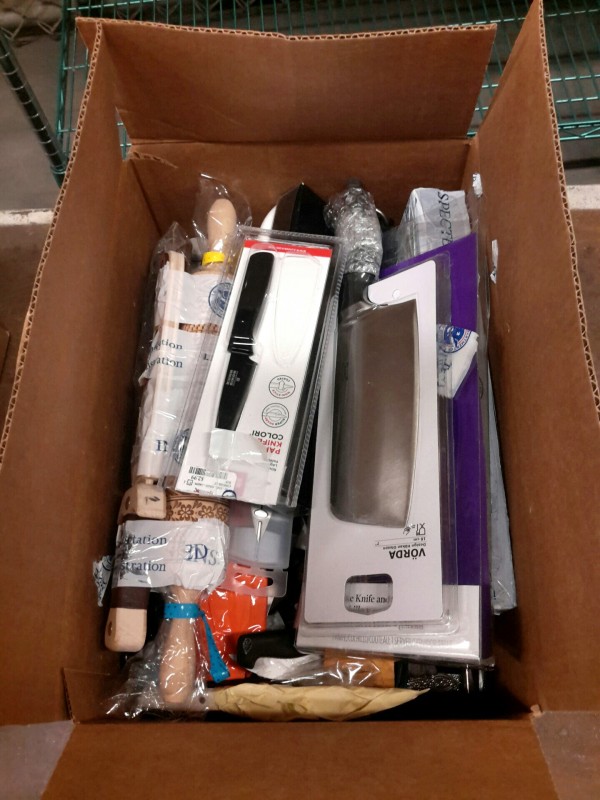 Description: 1 each box consisting of miscellaneous kitchen utensils. Box dimensions = 17 1/4"x11 1/4' x 9 1/2'