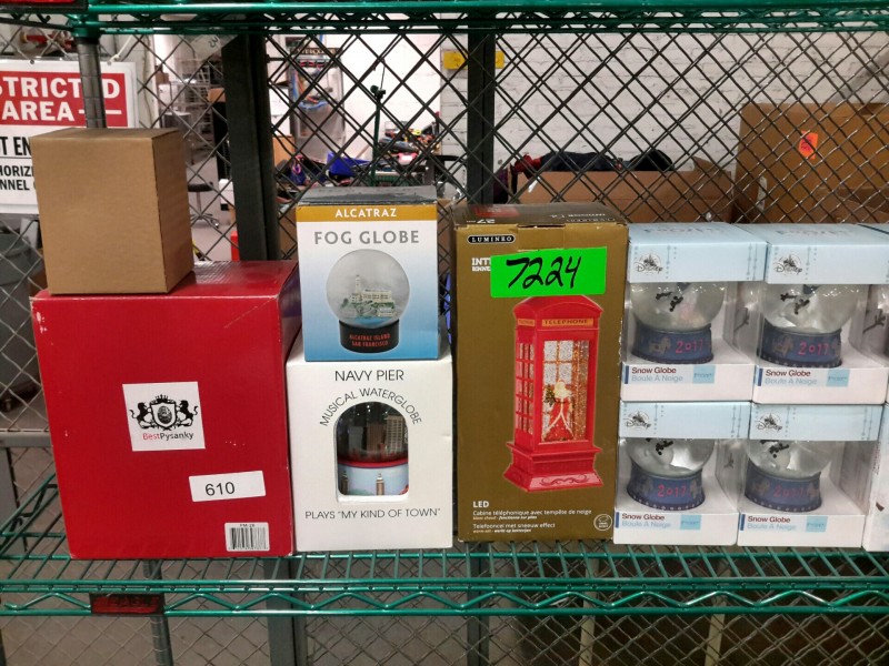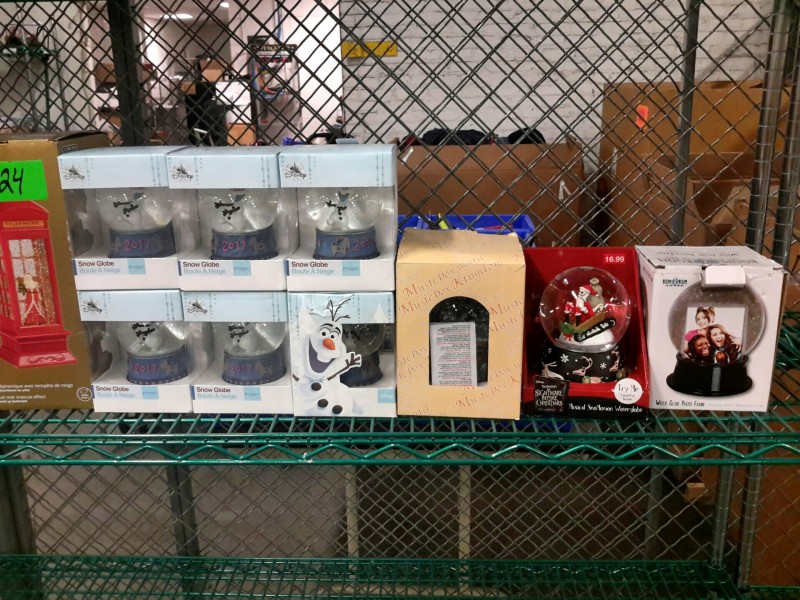 Description: Lot consisting of 14 each miscellaneous snow globes all new in box. The winning bidder will need to bring their own box/bin to pick this lot up. It will not be boxed up by the staff.