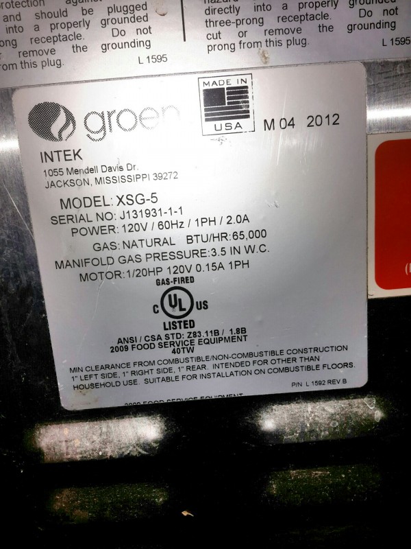 Description: 1 each Groen Intek convection steamer.