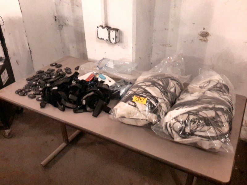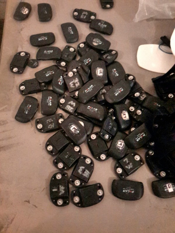 Description: Table lot consisting of numerous Polar heart rate monitors w/some bands and 2 each volleyball nets.