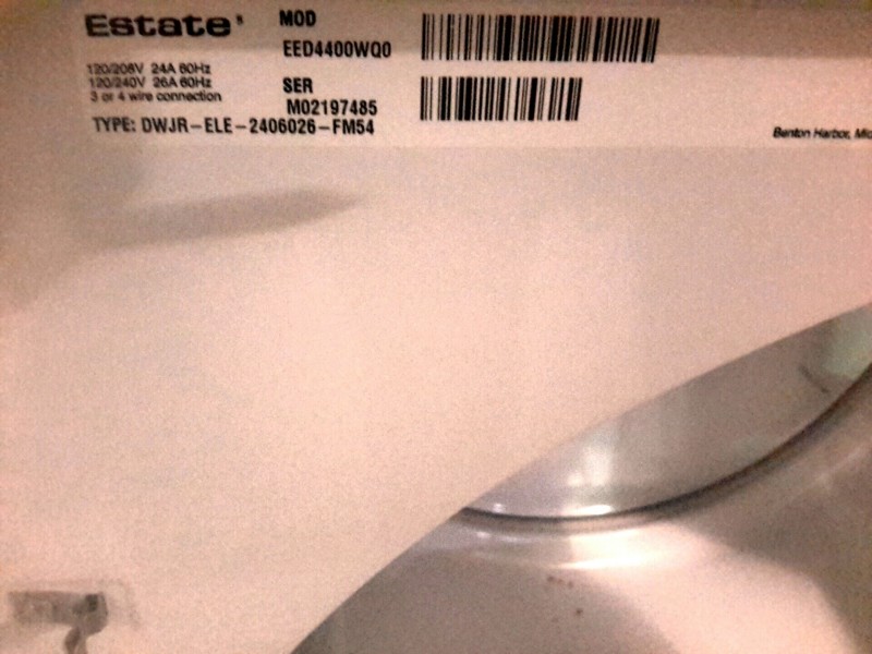 Description: 1 each Estate electric dryer.
