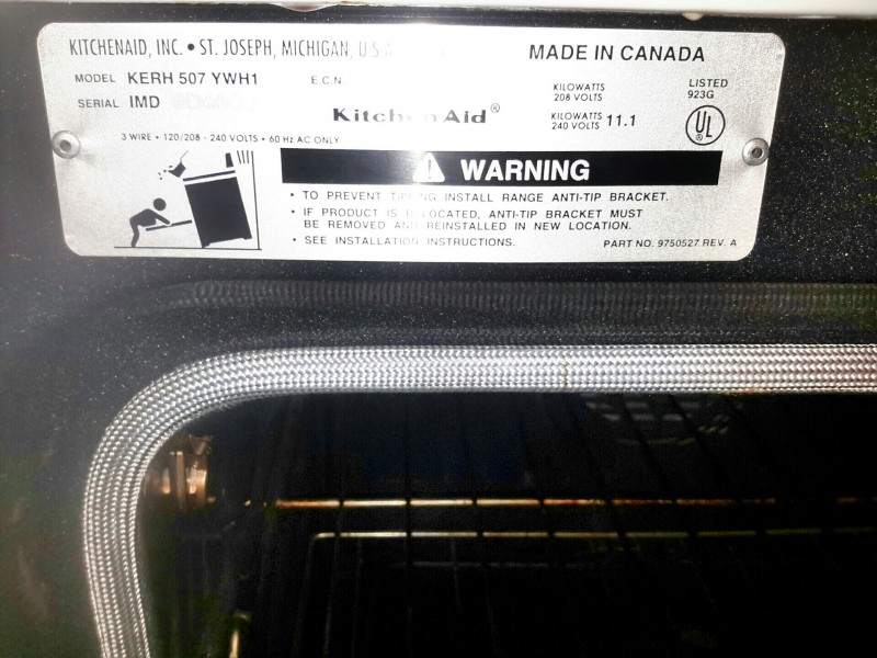 Description: 1 each Kitchen Aid electric range.