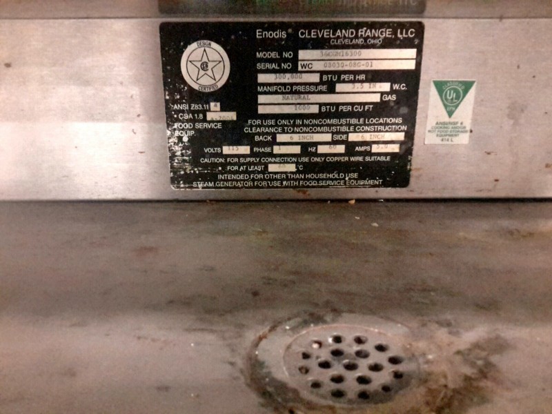 Description: 1 each Cleveland Convection Pro XVI steamer. The side panel is sitting on top of the unit.