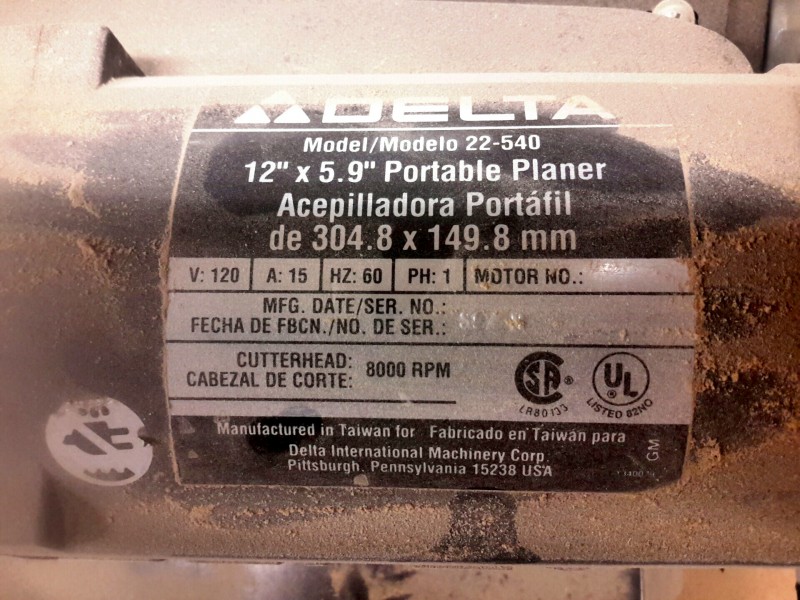 Description: 1 each Delta model 22-540 portable 12" planer with stand.