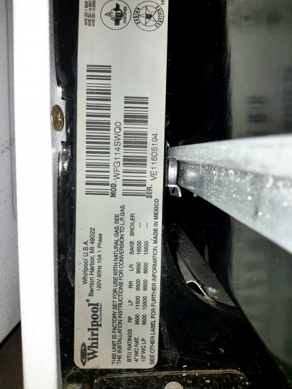 Description: Lot consisting of 1 each Whirlpool gas range. Hardware for the range are located in the bottom drawer. The model number for the unit can be seen in the picture gallery.
