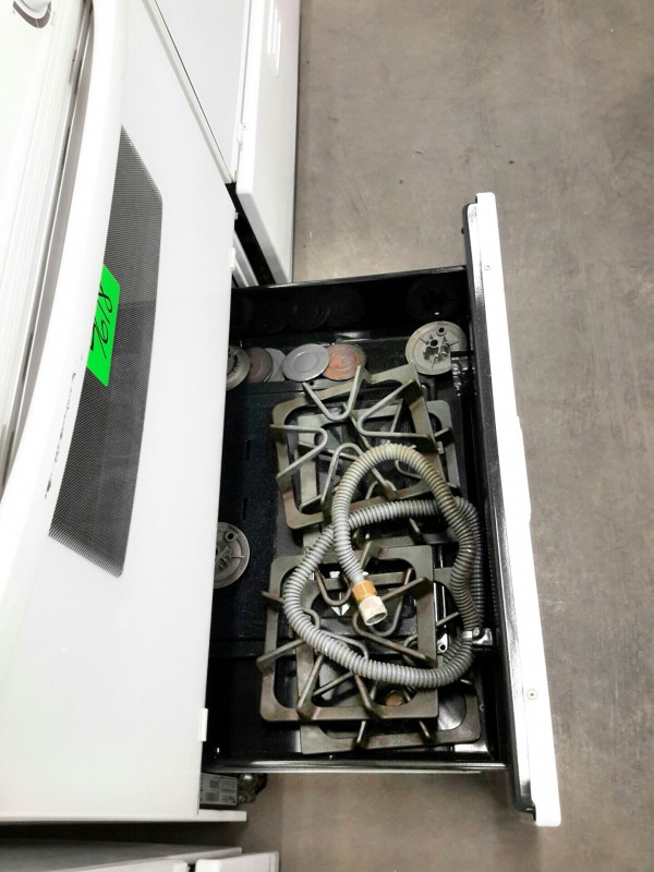 Description: Lot consisting of 1 each Whirlpool gas range. Hardware for the range are located in the bottom drawer. The model number for the unit can be seen in the picture gallery.