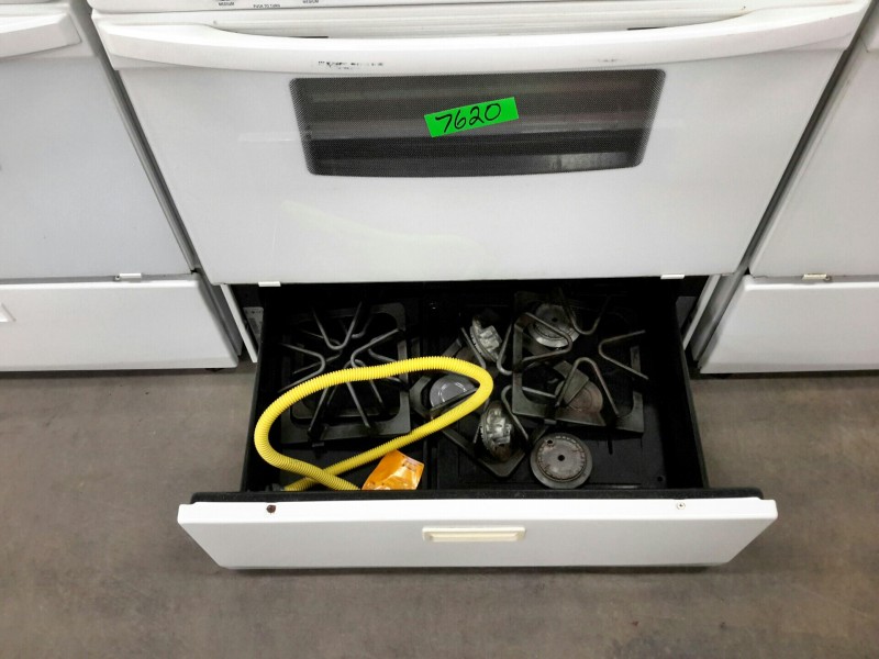 Description: Lot consisting of 1 each Whirlpool gas range. Hardware for the range are located in the bottom drawer. The model number for the unit can be seen in the picture gallery.