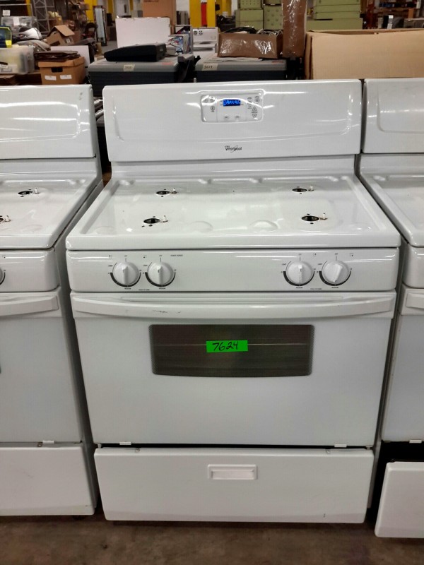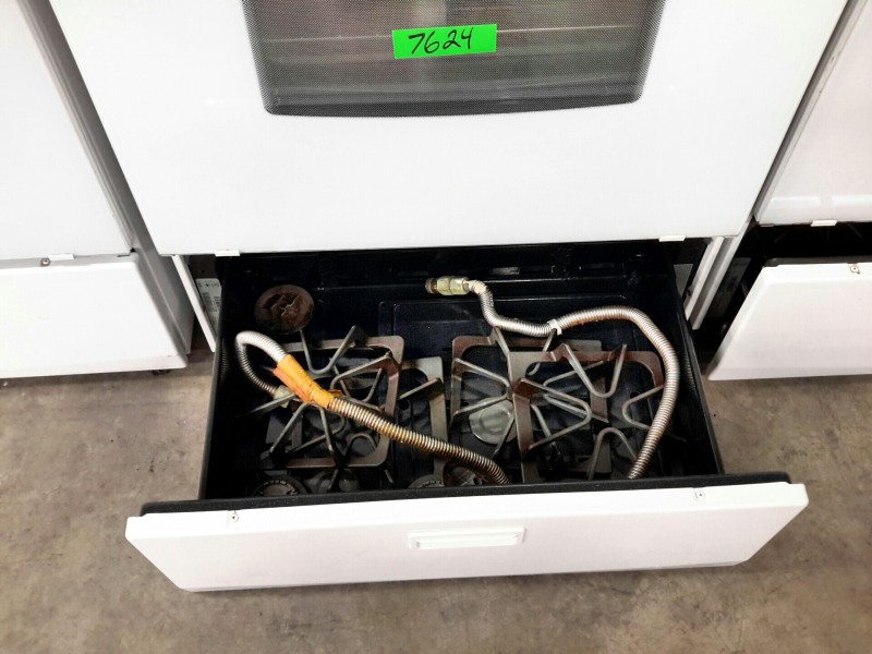 Description: Lot consisting of 1 each Whirlpool gas range. Hardware for the range are located in the bottom drawer. The model number for the unit can be seen in the picture gallery.