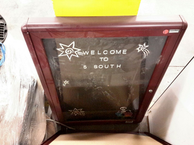 Description: Lot consisting of 4 each message/directory boards. 2 each of the units are plaque style and the othe 2 each are Quartet brand enclosure style with lockable glass dooors. no key is available for these units.