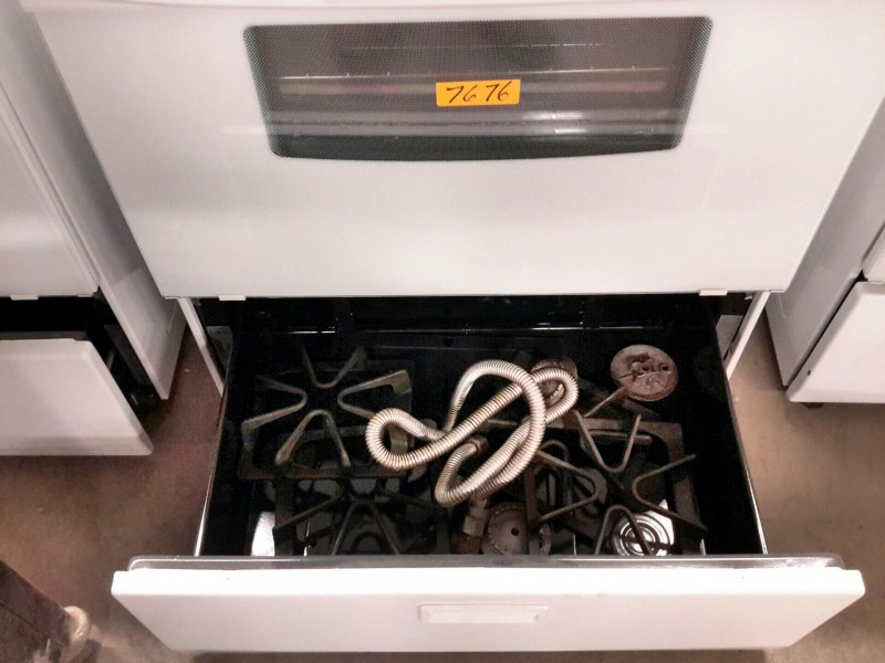 Description: Lot consisting of 1 each Whirlpool gas range. Hardware for the range are located in the bottom drawer. The model number for the unit can be seen in the picture gallery.