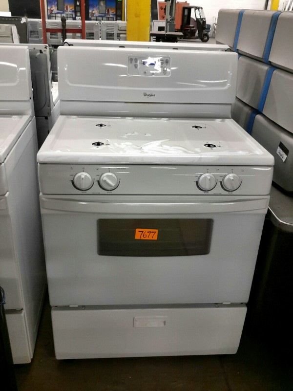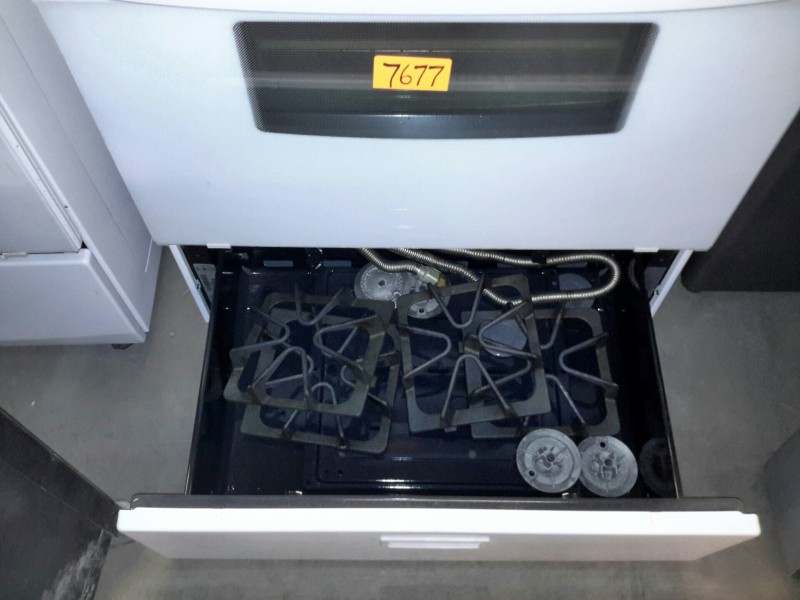 Description: Lot consisting of 1 each Whirlpool gas range. Hardware for the range are located in the bottom drawer. The model number for the unit can be seen in the picture gallery.