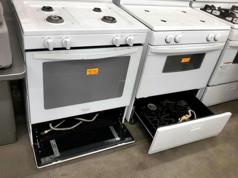 Description: Lot consisting of 2 each Whirlpool gas ranges. Hardware for the ranges are located in the bottom drawer. The model number for these units can be seen in the picture gallery.