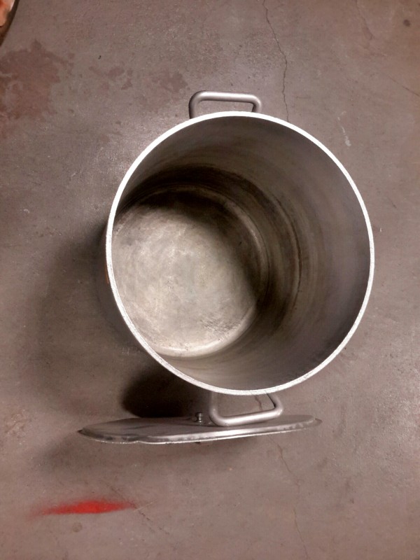 Description: 1 each aluminum pot with lid. The lid doesn't exactly fit the pot.