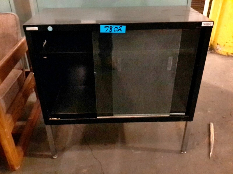 Description: 1 each cabinet with sliding glass doors.