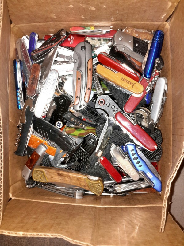 Description: 1 each 34lb box of miscellaneous pocket knives.