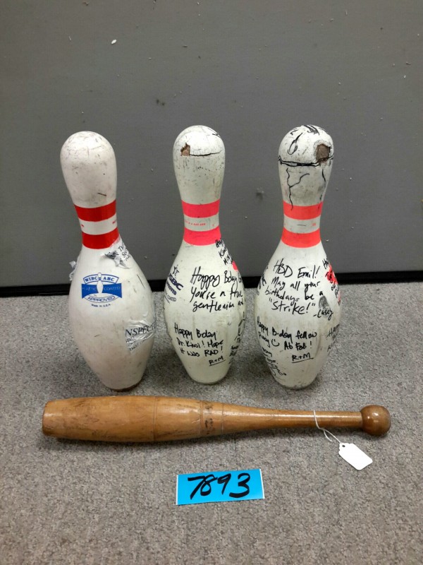 Description: Lot consisting of 3 each bowling pins and 1 each jugglers baton.