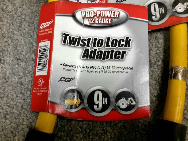 Description: lot consisting of 8 each Twist to Lock adapters and 1 each battery jump pack.