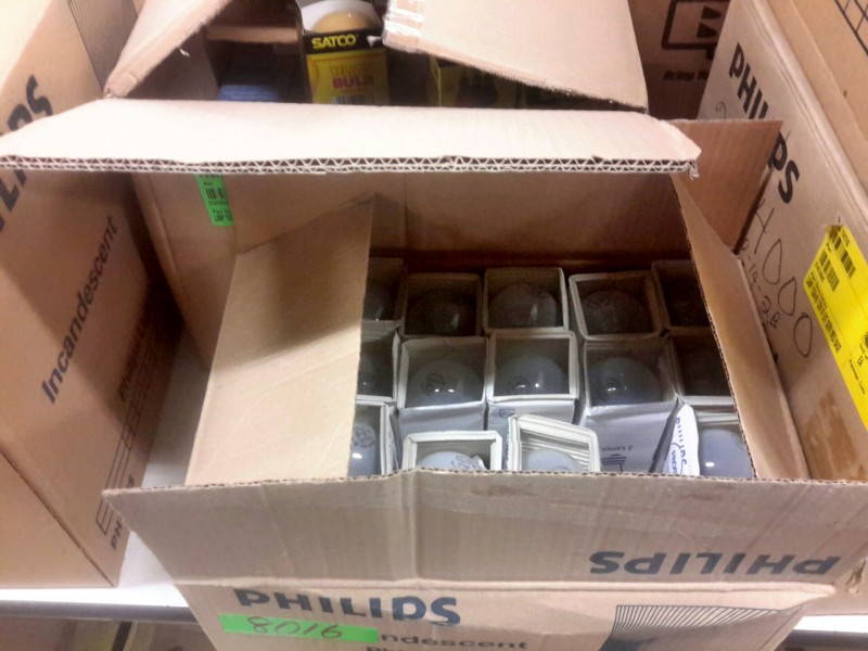 Description: 1 each table lot consisting of miscellaneous light bulbs. The table is not included in the auction.
