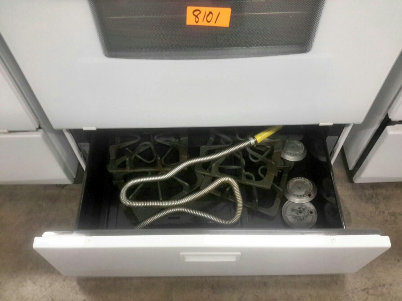 Description: Lot consisting of 1 each Whirlpool gas range. Hardware for the range are located in the bottom drawer. The model number for the unit can be seen in the picture gallery.