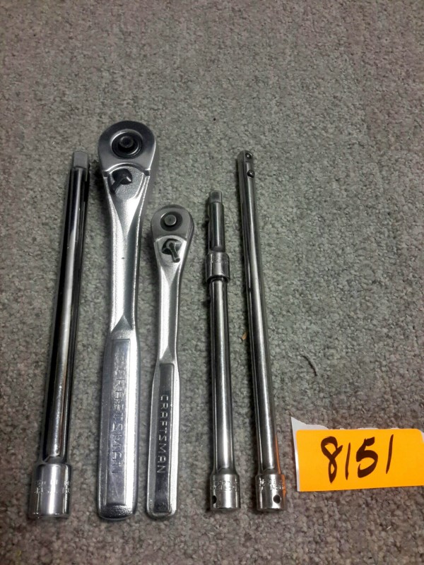 Description: Lot consisting of 1 each 3/8", 1 each 1/2" Craftsman ratchets with extensions.
