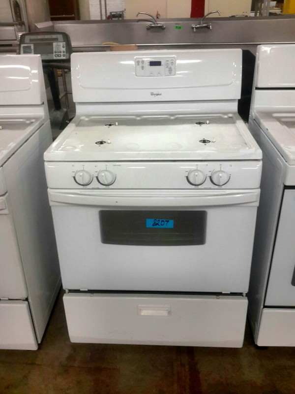 Description: Lot consisting of 1 each Whirlpool gas range. Hardware for the range are located in the bottom drawer. The model number for the unit can be seen in the picture gallery.
