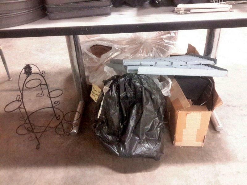 Description: 1 each table lot consisting of miscellaneous items. The table isn't included in this lot.