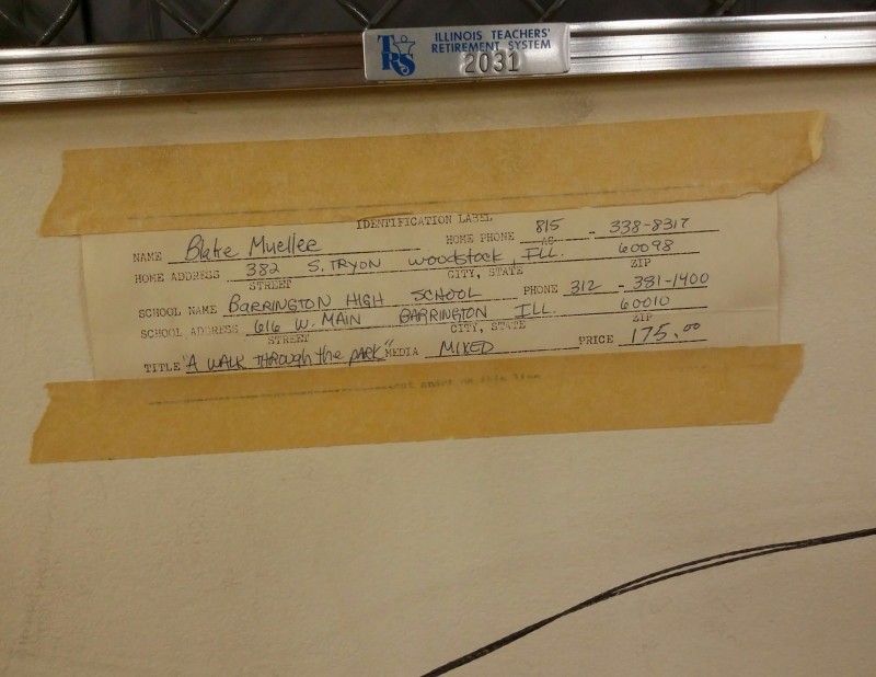 Description: 1 each mixed media art by Blake Mueller title "A Walk Through the Park".