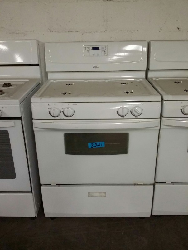 Description: Lot consisting of 1 each Whirlpool gas range. Hardware for the range are located in the bottom drawer. The model number for the unit can be seen in the picture gallery.