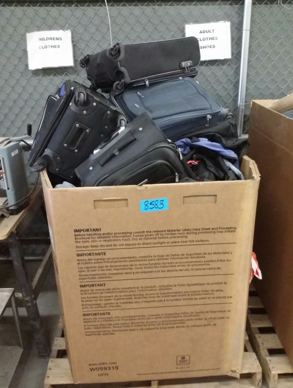 Description: 1 each big box consisting of luggage and bags. The box isn't included in the auction. The winning bidder will need to remove the contents from the box and leave the box behind.